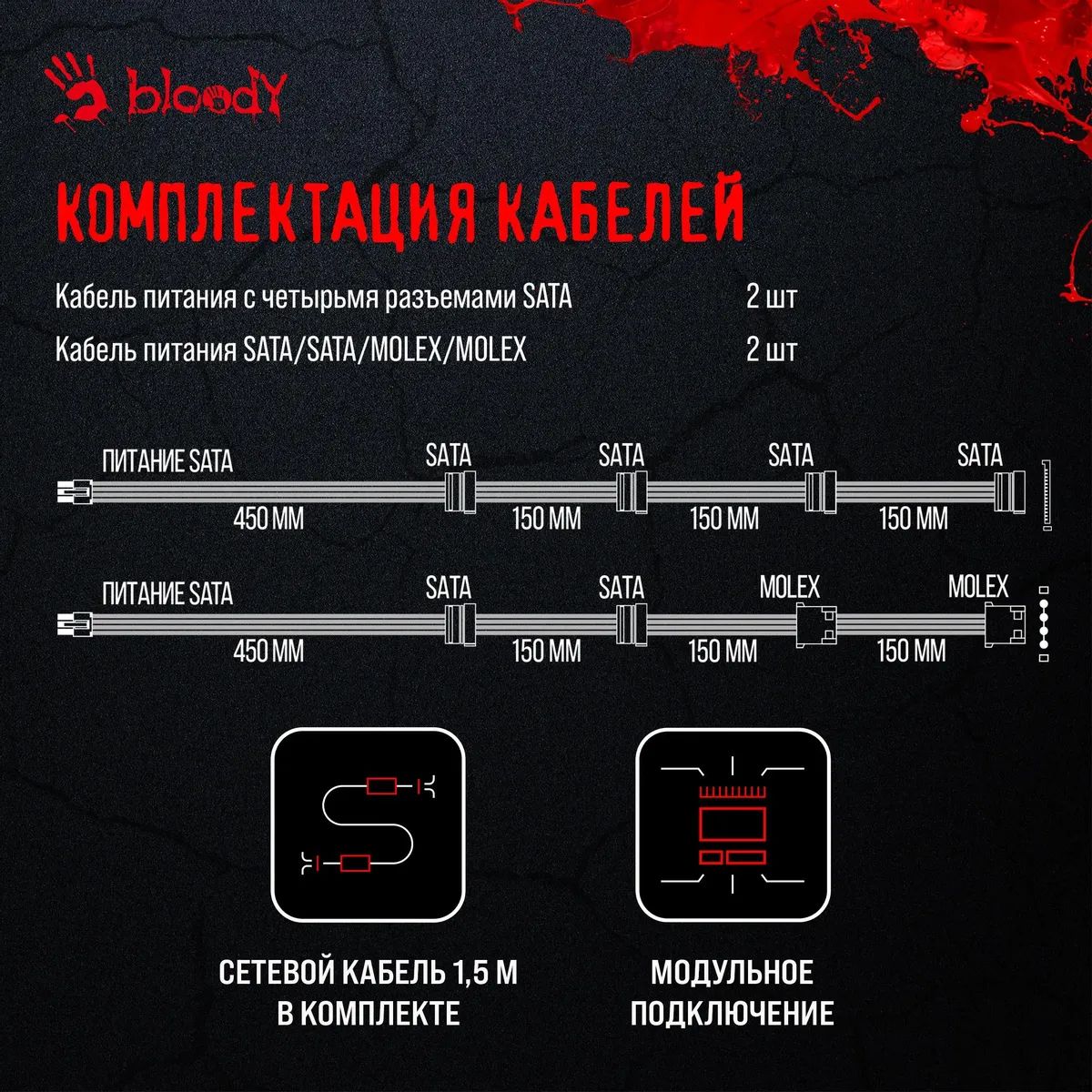 Блок питания Bloody ATX 850W BD-PS850G 80+ gold (20+4pin) APFC 120mm fan 12xSATA Cab Manag RTL