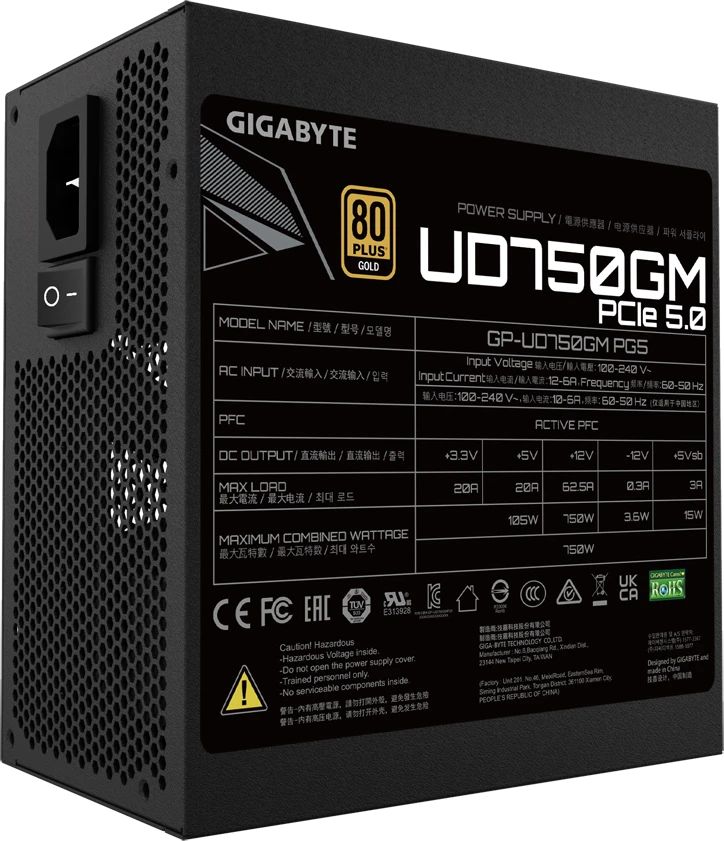 Блок питания Gigabyte GP-UD750GM PG5 V2, 750Вт, 80 PLUS GOLD, 120мм, черный, retail