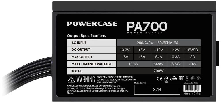 Блок питания Powercase PA700 ATX 2.31, 700W, APFC, PA-700SI