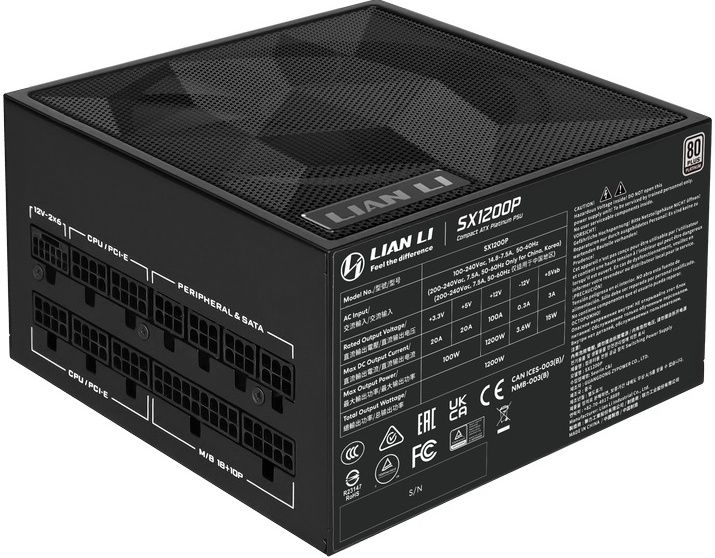 Блок питания Lian Li SX1200P, ATX 3.1, 1200W, 80 PLUS Platinum, Black Fully Modular (G9P.SX1200P.B000.RU)
