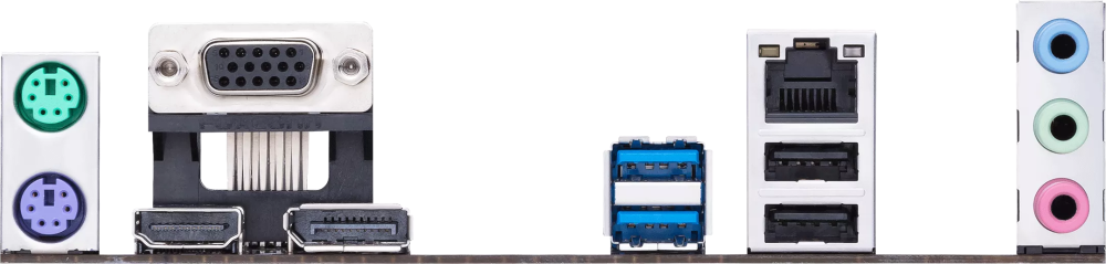 - 2 x PS/2, 2 x USB 2.0, 2 x USB 3.2 Gen1, VGA, HDMI, DisplayPort, RJ-45