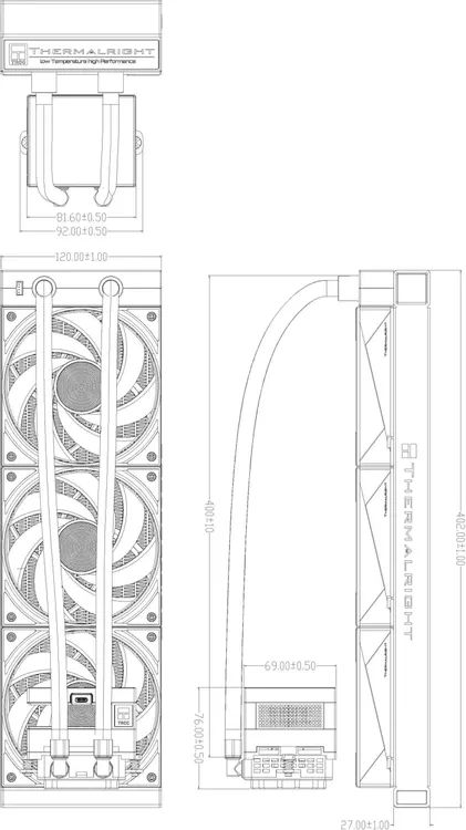 - Размер радиатора 403 x 120 x 27, Размер водоблока 69 x 92 x 76