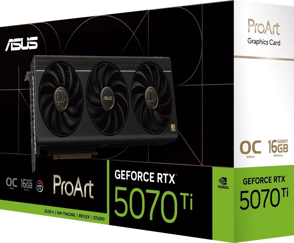 Видеокарта ASUS NVIDIA GeForce RTX 5070 Ti ProArt OC 16Gb, GDDR7, OC, Ret (PROART-RTX5070TI-O16G)