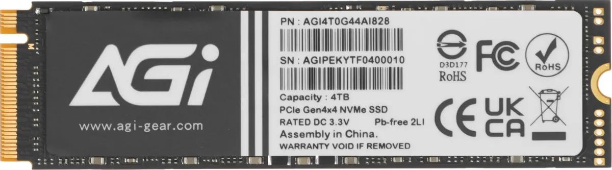 Накопитель SSD AGi PCIe 4.0 x4 4TB AGI4T0G44AI828-CB AI828 M.2 2280