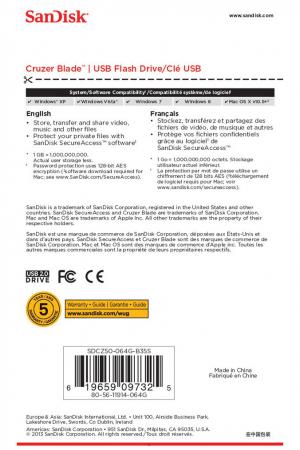 Флешка USB 64Gb SanDisk Cruzer Blade SDCZ50-064G-B35 черный