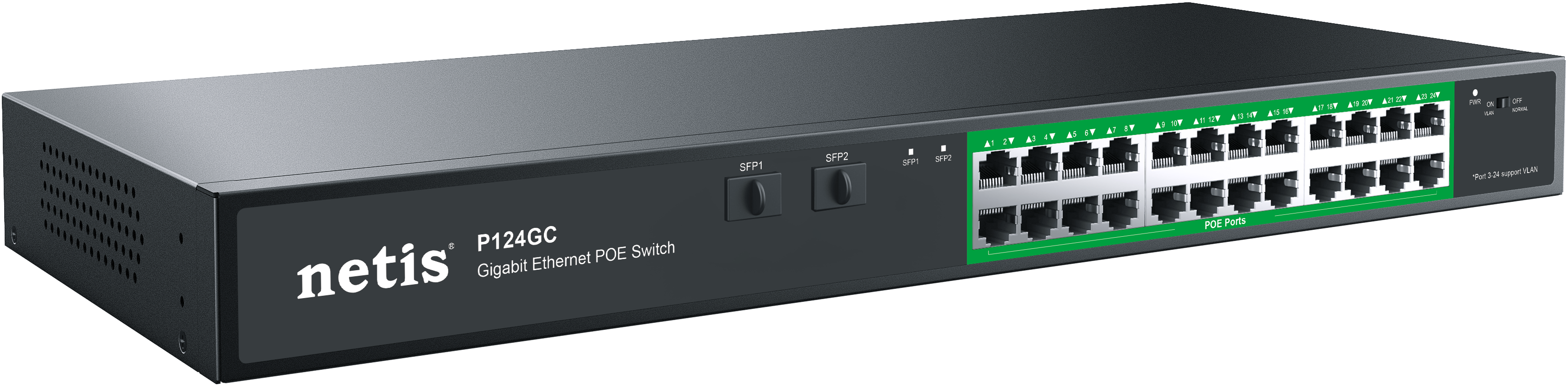 Неуправляемый PoE+ Gigabit Ethernet коммутатор NETIS P124GC 24PORT 10/1000M POE 2 SFP COMBO