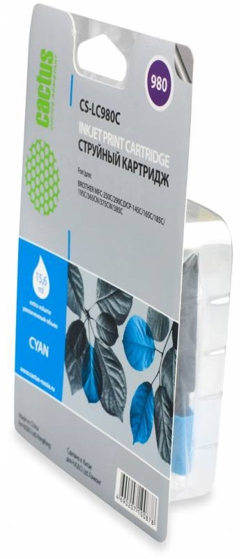 Картридж струйный Cactus CS-LC980C голубой для Brother DCP-145C/165C MFC-250C/290C (16ml)